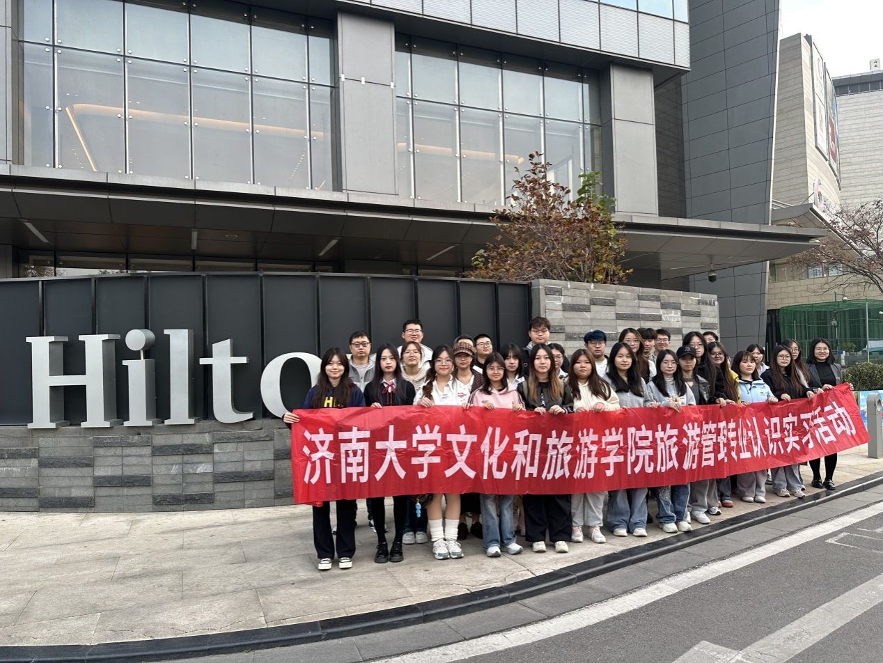 在济南绿地美利亚酒店和鲁能希尔顿酒店,学生通过实地参观、交流座谈与现场模拟等途径,学习了酒店的裙底偷拍、服务设施配置、各岗位的工作内容及服务要点等。在山东博物馆,学生现场分组模拟导游讲解,领略了山东的历史文化和地域特色,对文创商品设计与开发、业态布局及展品数字化展示进行了全面了解。在大明湖景区,学生对景区旅游资源的分布、功能分区与商业设施进行了深入考察,并分组开展了关于大明湖景区新业态与旅游新市场的问卷调研工作。