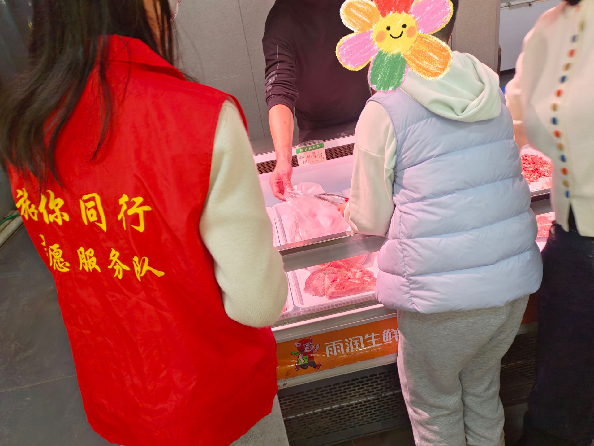 生活即课堂,实践长本领。志愿者们带着孩子们走进菜市场,手把手教他们辨识鲜肉的种类、挑选新鲜蔬菜,在与食材的近距离接触中,认识不同食材的模样与名称,让孩子们在直观体验中积累生活常识。孩子们扬起小脸认真模仿,动作虽略显笨拙,眼神却满是专注与好奇。“把生活技能教给他们,就是给他们未来多一份底气。”志愿者许莉的话道出了活动的初衷,在动手实践中,孩子们的独立能力得到锻炼,对生活的认知也愈发深刻。