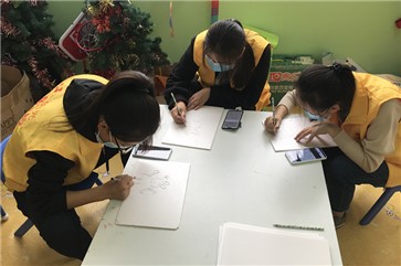 本次病房学校活动在轻松愉悦的气氛中进行。在玩具消毒、座椅擦拭、地板清洗等准备工作后,志愿者们协助老师一齐帮助孩子们描绘众多动画形象。参与其中的儿童也达到了史上最多。起初,一名志愿者负责一名儿童,后来增加至两名,三名……孩子们专注的样子,纯真地表达着他们对绘画的喜爱,对志愿者的喜爱,对生活的热爱,对整个世界的爱。