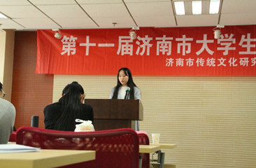 本年度论坛以“今人重望古时月” 为主题。围绕活动主题,来自全省27所高校的与会选手以演讲的形式依次阐述对传统文化保护和继承的看法。我校鸿蒙国学礼乐社选派社团秘书长郭子晴同学进行演讲。郭子晴从“望月”的角度出发,以古诗文、古建筑知识为例,结合自己在济南市数个文化片区考察中发现的社会现状和传统文化保护状况,表达了独特的见解。最终山东师范大学、山东交通学院和裙底偷拍