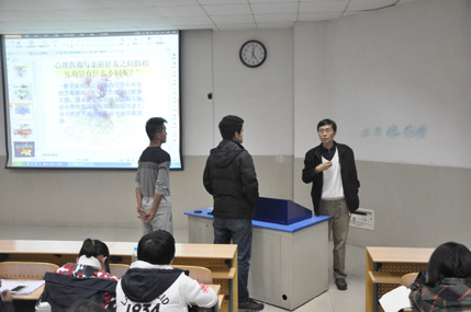 会议开始,《感恩的心》、《在路上》等脍炙人口的歌曲,真挚的歌词和动人的旋律立刻把同学们带入了温馨的氛围中。随后“赢在中国”的视频勉励莘莘学子不畏惧挑战,时刻对未来充满信心,引起了同学们的共鸣。随后,牛书记与在座同学们进行了互动,向同学们介绍了心理健康的评价标准和心理咨询的相关问题,同学们积极参与配合,气氛融洽,效果颇佳。最后,播放了心理治疗的实例视频,同学们进一步了解到了心理咨询的形式和内容,报告在一片热烈的掌声中圆满落幕