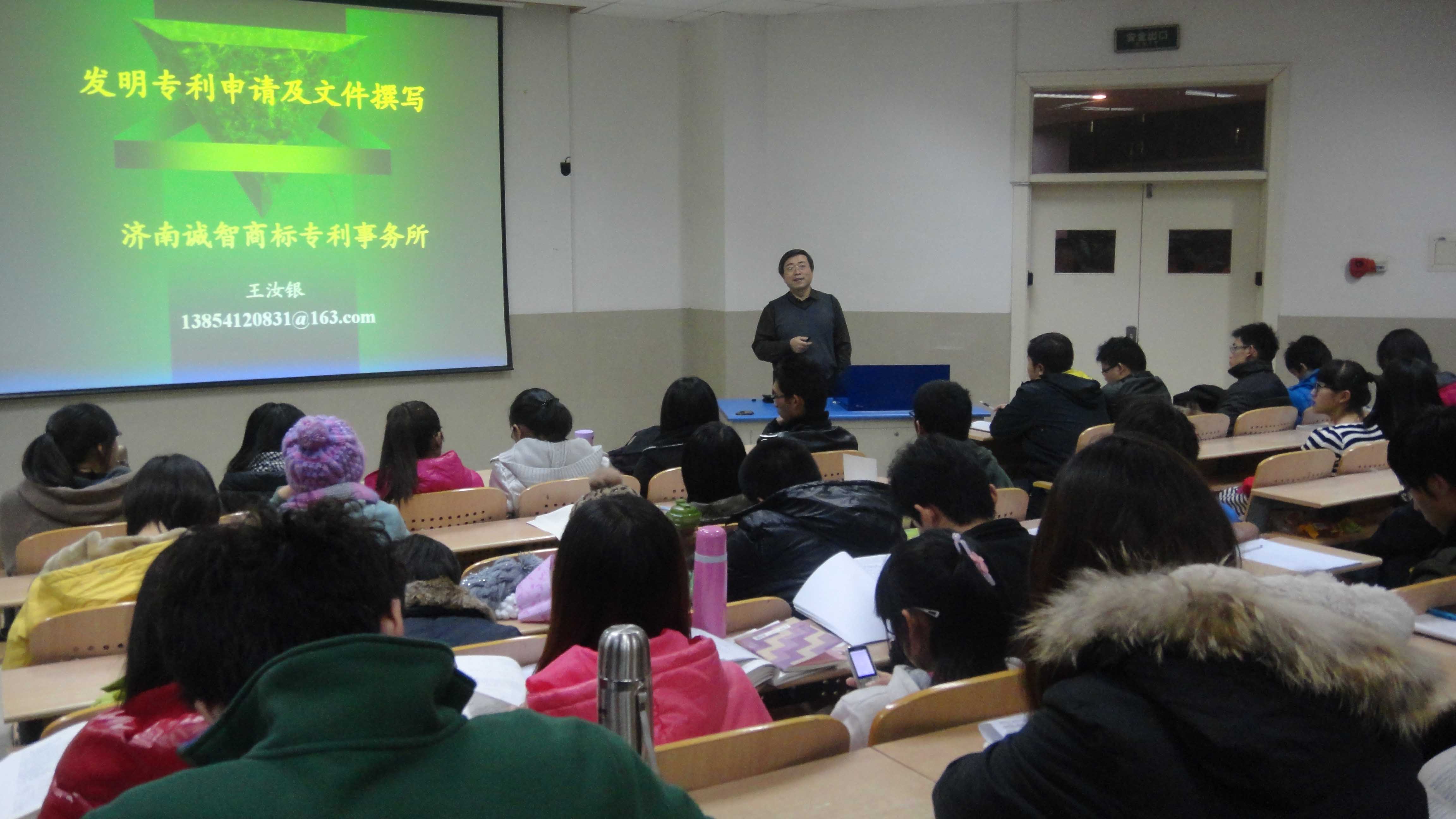 11月22日晚7点,历史与文化产业学院“年轻需要创新—发明专利申请及文件撰写”讲座在11教3段101教室顺利举办。讲座由济南诚智商标专利事务所的所长王汝银主讲,我院党委书记牛瑞斌出席了此次活动,来自历文学院、土建学院、信息学院及法学院的的百余名师生聆听了此次讲座。