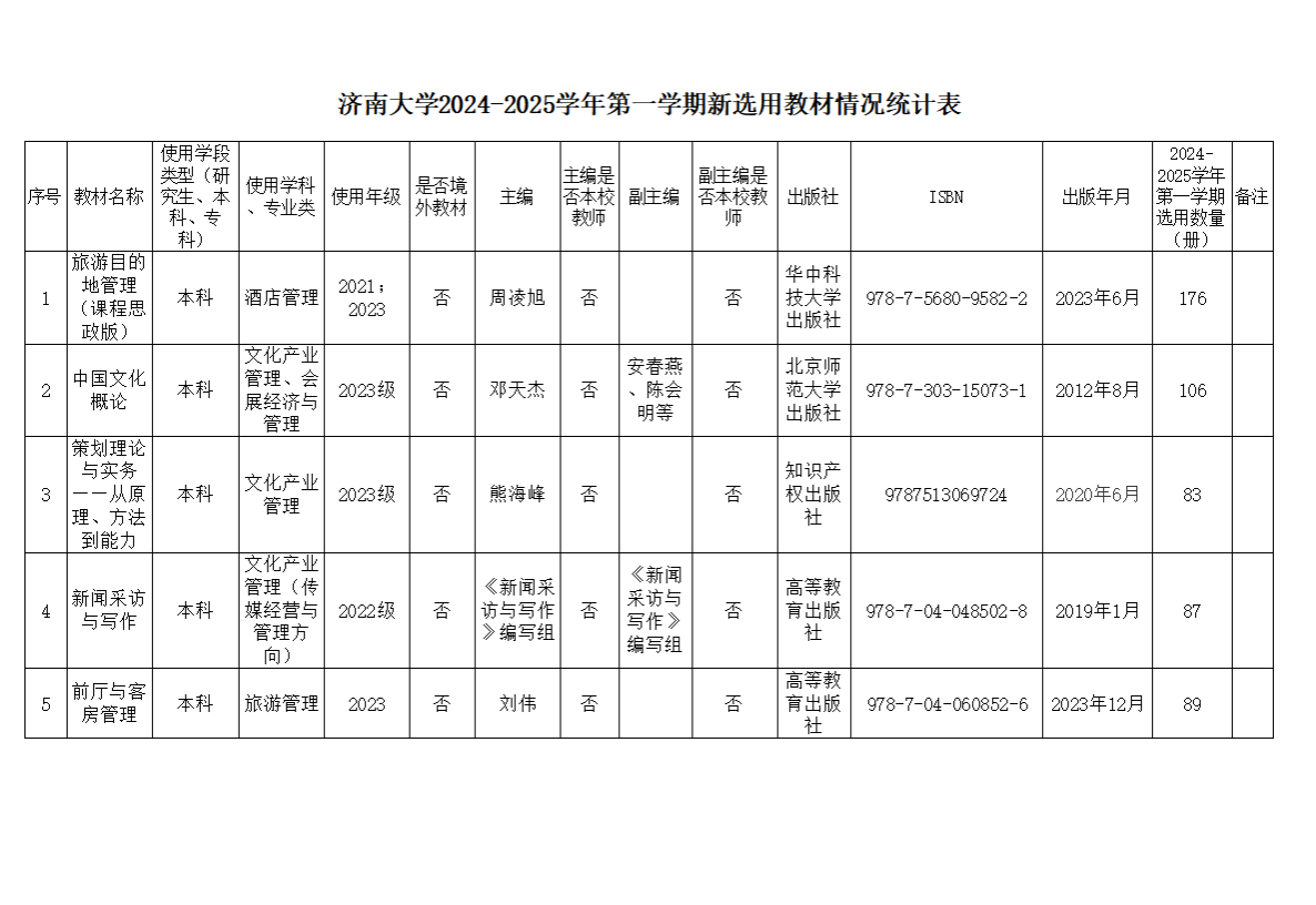 根据《普通高等学校教材管理办法》(教材〔2019〕3 号)和《裙底偷拍 教材管理办法》(济大校字〔2021〕86 号)文件精神,为规范教材选用审核程序,严把教材选用质量关,切实发挥教材在立德树人、人才培养、课程育人等方面的作用,更有效地服务教学和推动教学质量的提升,经学院教材工作领导小组审查,现将我院2024-2025学年第一学期本科教材选用意向公示如下,如有异议,请及时反馈,联系电话为0531-89736436。