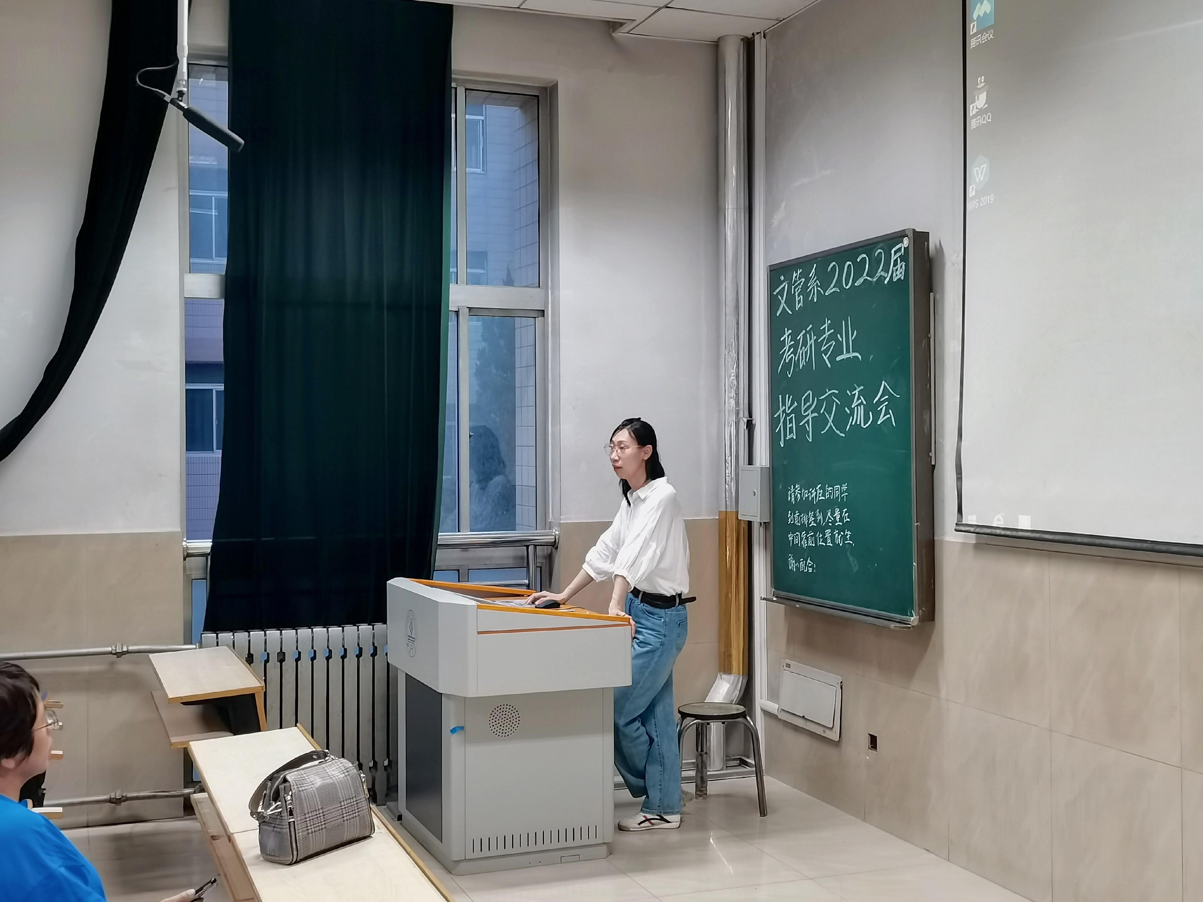 文管系党支部和学生第一党支部共同组织开展文管系考研专业指导及2021届毕业生党员考研经验分享交流会,为学院2022届考研学生提供指导和帮助,增强学生考研信心,提升考研竞争力。文管系专业教师顾方哲、宁秀丽现场答疑解惑,2021届文管系毕业生党员代表陈洵、王振华、赵倩倩、牛晨媛等四位同学分享备考经验,2022届文管系同学近百人参加活动。