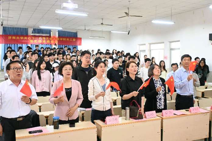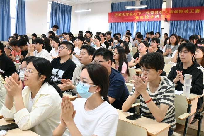 党委书记孟德洋,学院党委副书记、副院长信苏珊出席活动,济南老年人大学宣讲团、文旅学院全体学生党员、新一期积极分子、青马工程学员、教师代表共200余人参加活动。