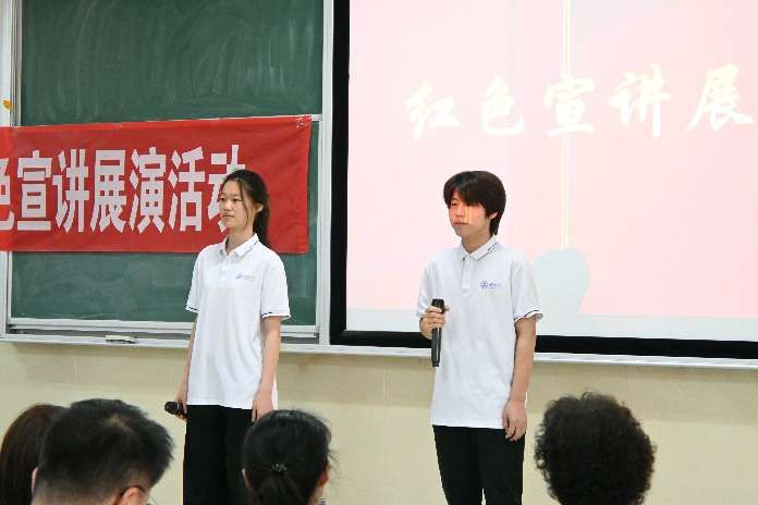 活动最后,全体起立齐声合唱《歌唱祖国》,激昂的歌声回荡在会场,将现场气氛推向高潮。此次红色宣讲展演暨党史校史进课堂活动,不仅是一次文化的盛宴,更是一次精神的洗礼,进一步推动了校园文化建设和思想政治教育工作。未来,学院将继续秉承这一理念,为培养更多具有爱国情怀和红色基因的新时代青年贡献力量。