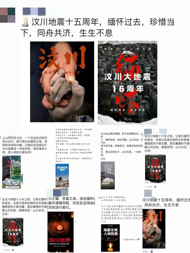 另外,同学们还通过社交媒体平台,转发有关汶川地震以及防震减灾的文案与宣传图片,扩大宣传覆盖面,让更多人加强对防震减灾的关注。活动负责人骆敬茹表示:“我们希望通过这样的活动,让每一位同学都能深刻认识到防震减灾的重要性,掌握基本的自救技能,为创建平安校园贡献一份力量。”