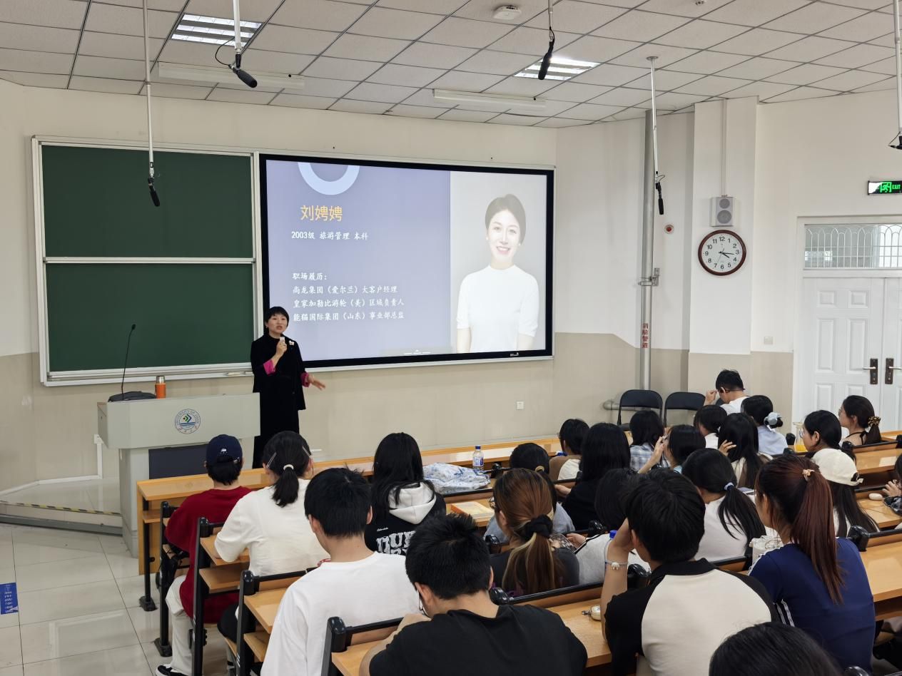 为帮助在校学生做好职业规划、提升就业竞争力,我院于4月23日成功举办"校友面对面——大学生职业规划与求职技巧"专题讲座。活动邀请到2003级旅游管理专业优秀校友、能猫国际集团(山东)事业部总监刘娉娉担任主讲嘉宾,学院党委副书记信苏珊出席活动并讲话。学生代表100余人参加了本次活动。