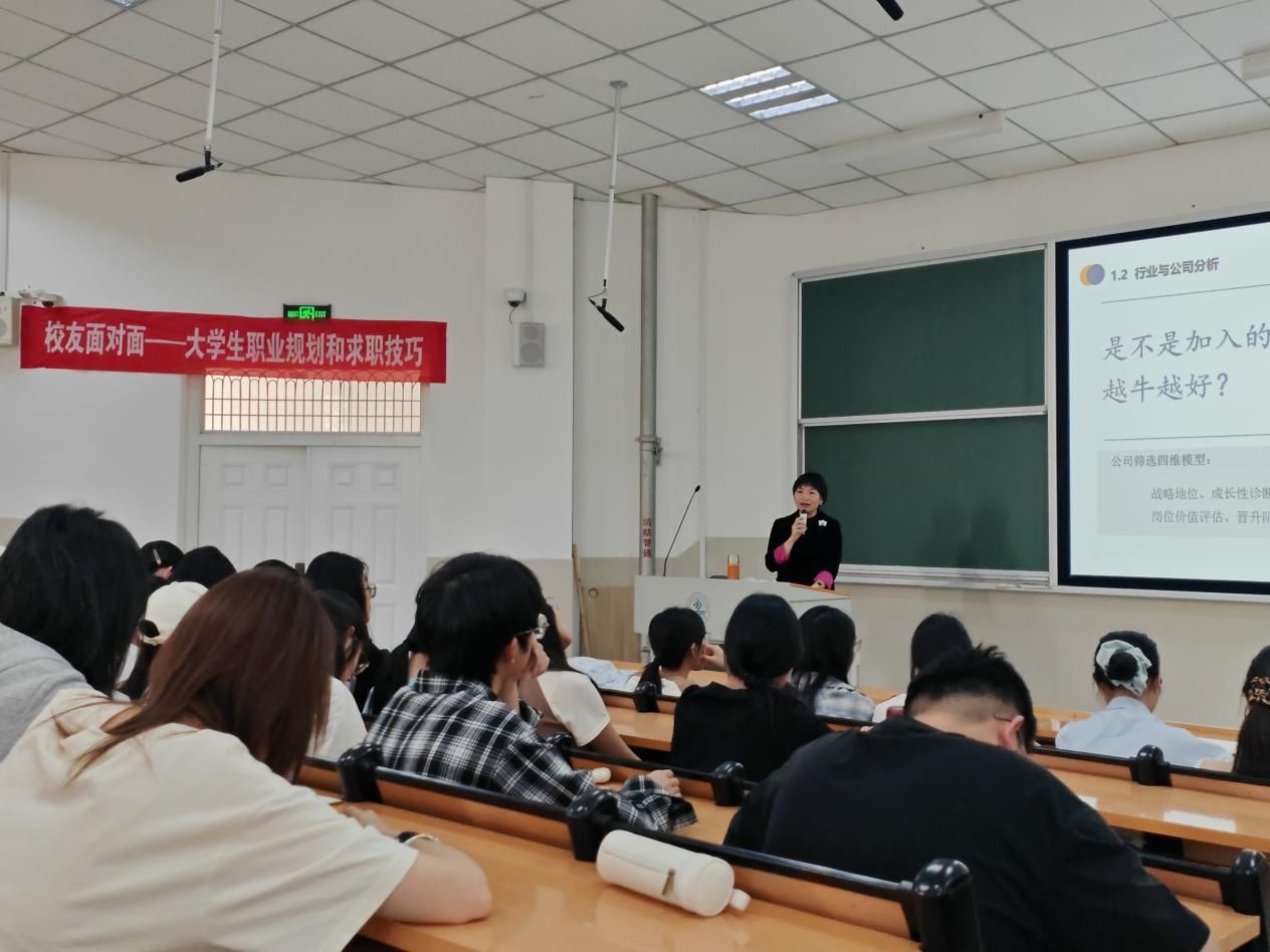 刘娉娉校友的讲座不仅为学子提供了实用的职业规划和求职指导,还搭建了校友与在校生交流的桥梁,通过分享职场经验、传递行业智慧,为同学们点亮了职业明灯。未来,我院将持续开展此类活动,助力学生实现职业梦想。