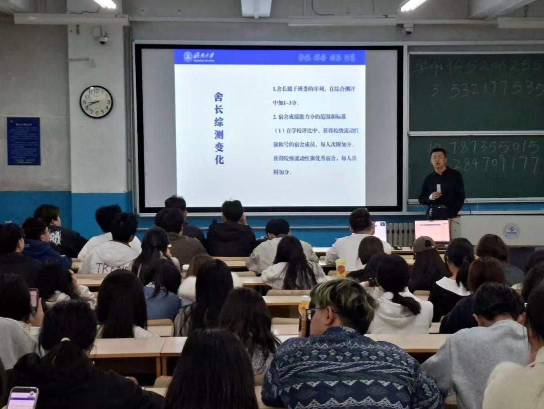 为进一步规范公寓管理工作,精准把握学生住宿需求,畅通意见反馈渠道;4月2日晚,学院组织召开宿舍长大会,围绕舍长职责、综测公寓部分新规与公寓改造意见收集等议题进行交流。会议由学院学生工作办公室主任吕龙飞老师主持,全体宿舍长、自律会成员参加了此次会议。