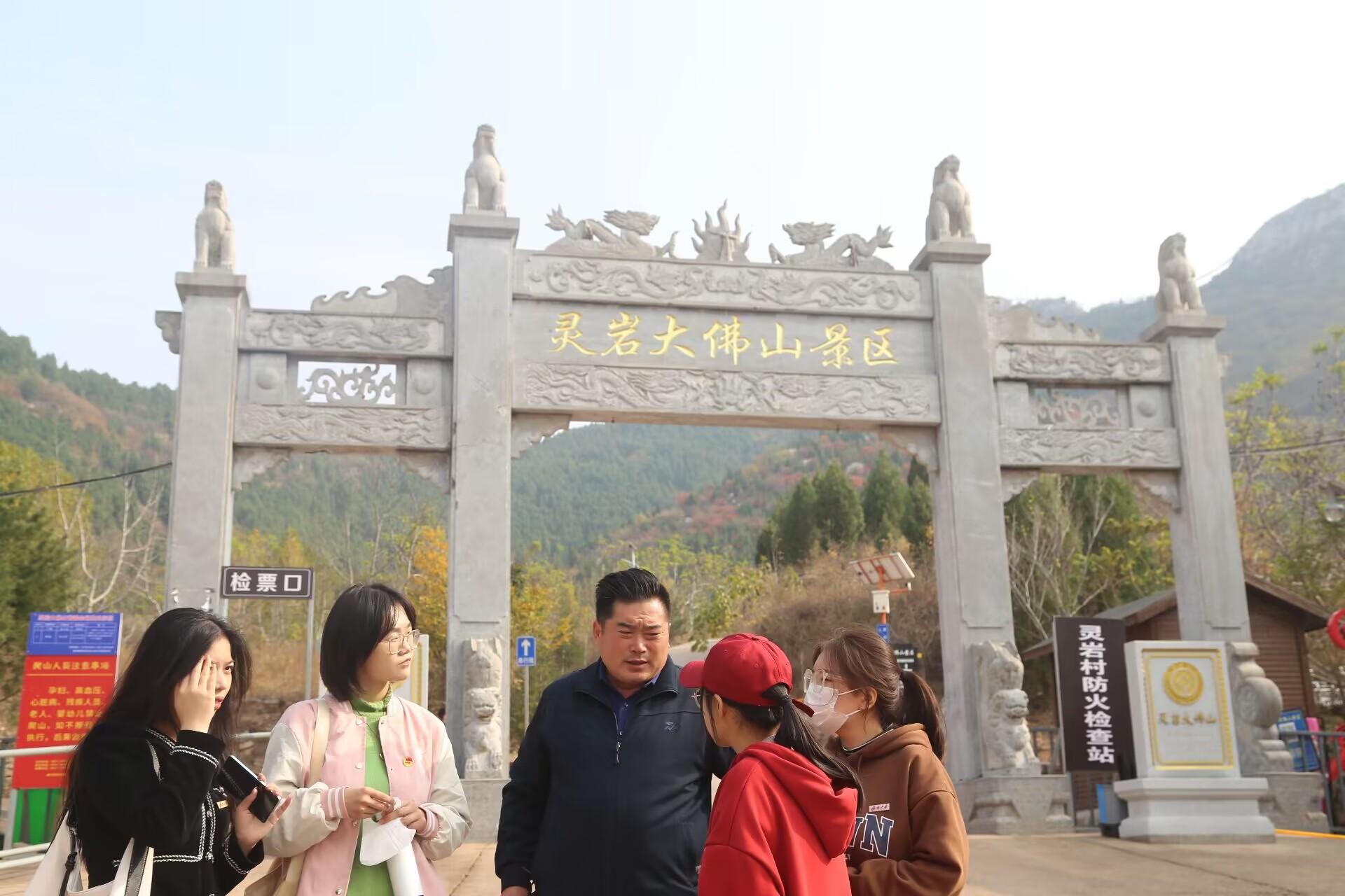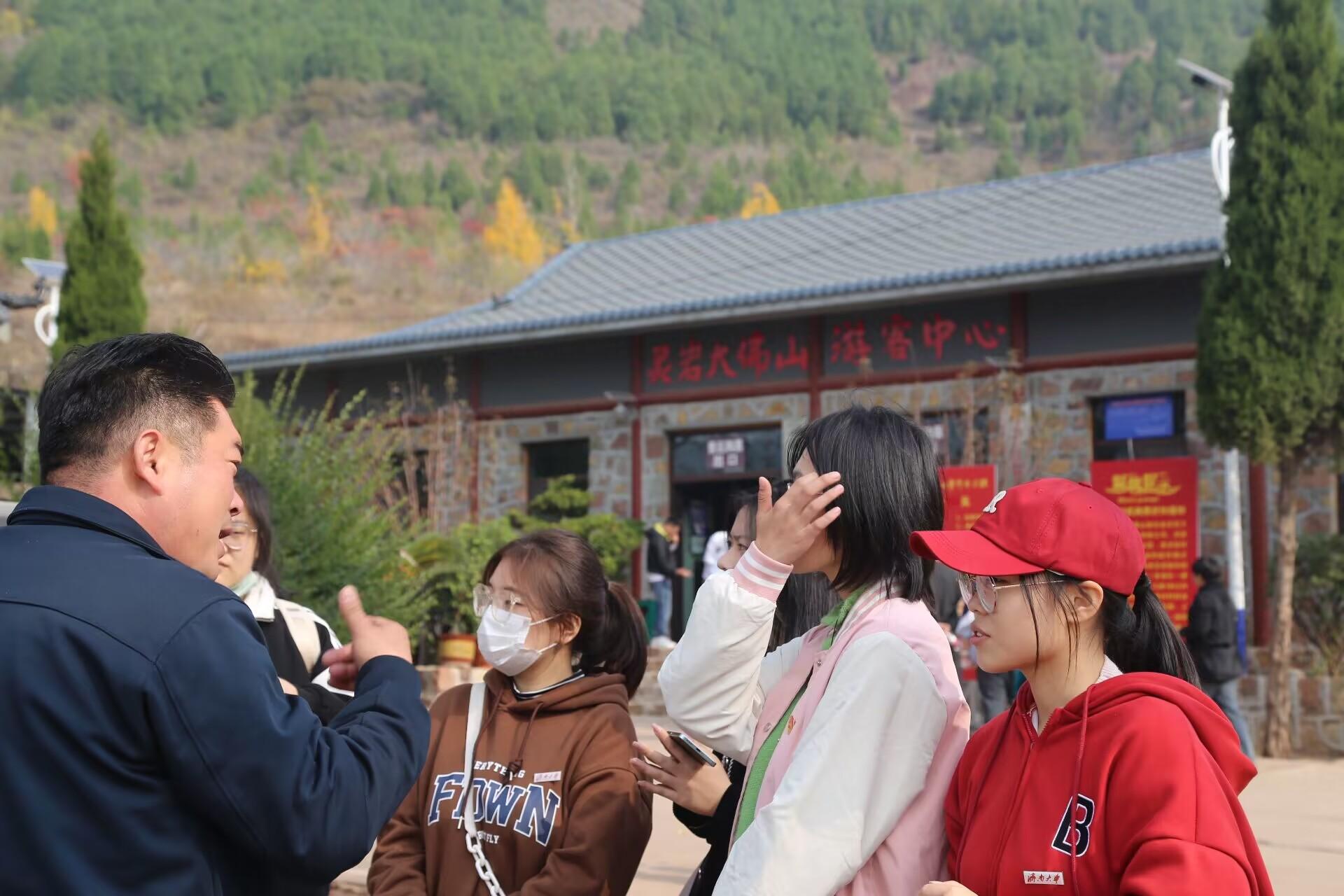 的六名学子走进灵岩大佛山景区与当地工作人员进行深入交流,调研文旅融合的详细情况。
