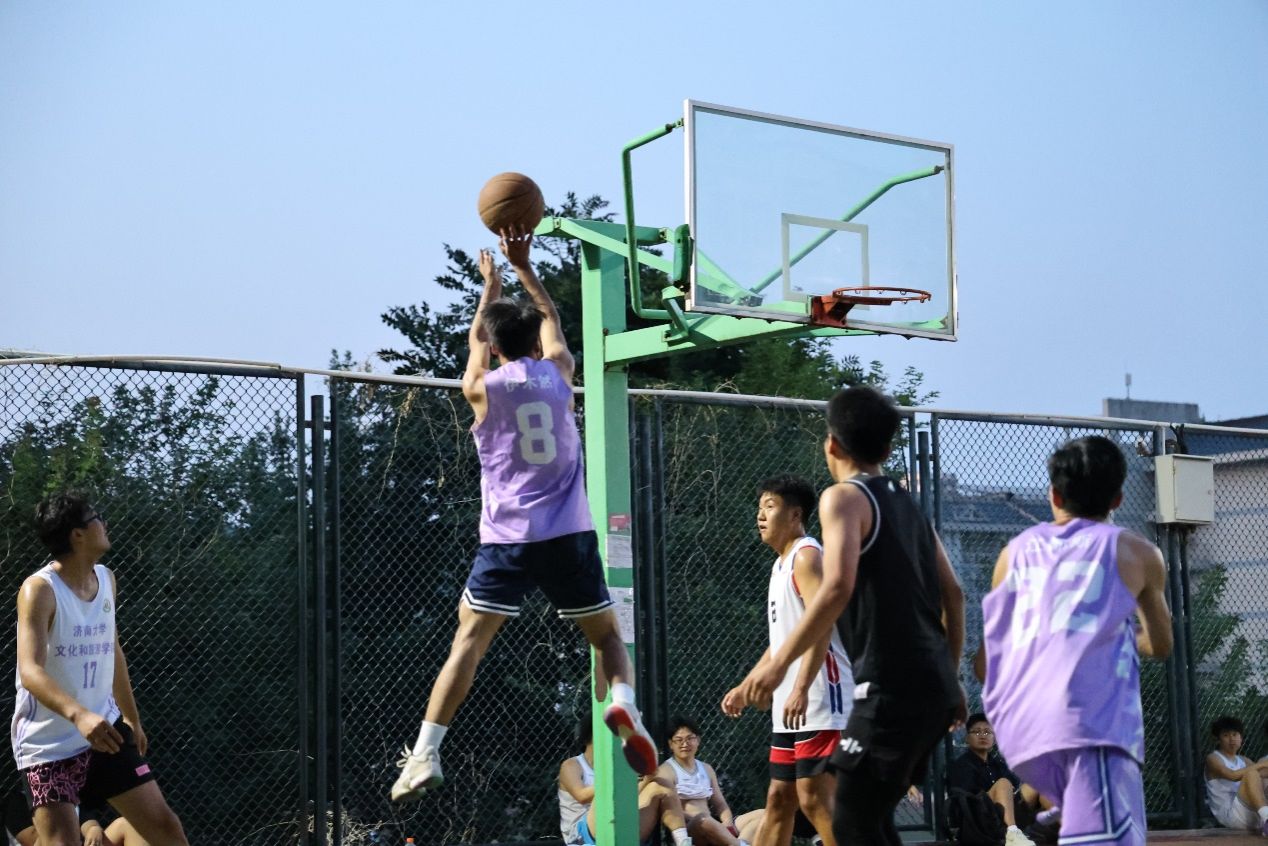 赛场上,汗水打湿了球员们的鬓角,湿透了球员们的球衣。严密的防守,犀利的进攻,绝妙的配合,球场上的少年步伐如风,一突一投间写尽青春色彩。