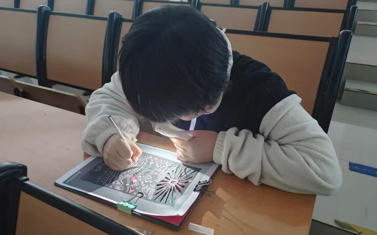 随着剪刀的一次次落下,一幅精美的剪纸便诞生在手中。同学们用剪刀和纸张传递着他们的情感、创意和对剪纸艺术的热爱。线条流畅如丝,细腻入微,勾勒出无与伦比的图案之美;色彩丰富绚丽,相互辉映,展现出令人目眩的视觉盛宴;构思巧妙独特,寓意深远,蕴含着丰富的文化内涵与智慧;技艺精湛绝伦,巧夺天工,仿佛是大自然与人类智慧的完美结合;形象栩栩如生,跃然纸上,赋予了静态纸张以鲜活的生命力。