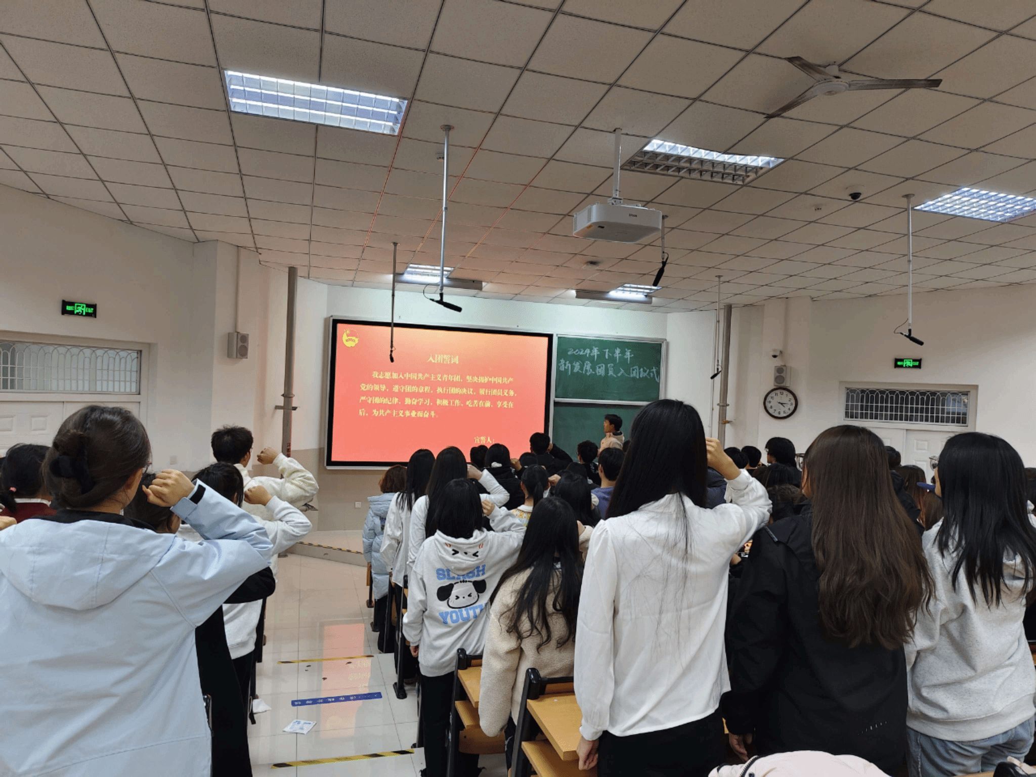 于D3J202举行了2024年度新发展团员入团仪式,仪式由李超然同学主持,学院团委书记吕龙飞老师、新发展团员及所属团支部全体委员共计七十余人参与了本次活动。