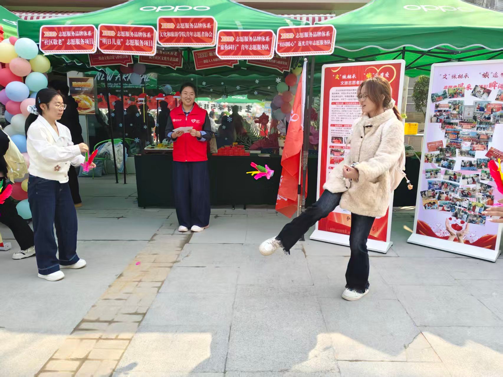 积极参与学校于2026年3月16日至17日在主校区八食堂广场及食堂北街举办的“汇聚志愿星火,青春挺膺担当”学雷锋志愿服务一条街暨项目交流展示活动,以专业特色赋能志愿服务,充分展现文旅学子昂扬向上的精神风貌与服务社会的责任担当。