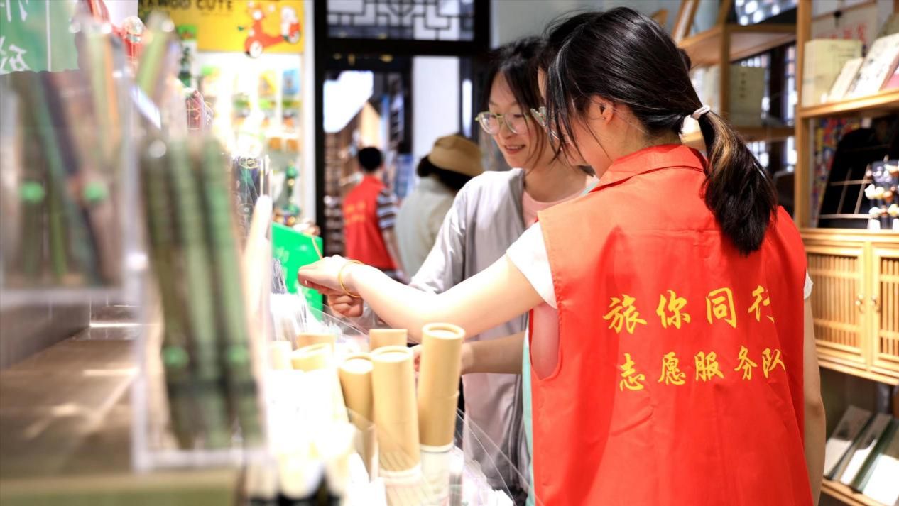 当天,在百花洲景区设立的志愿服务点,志愿者身着标有“旅你同行”logo的志愿者马甲,手持“绿色旅行,从我做起”“有困难找志愿者”等标识牌。他们面带微笑,耐心细致地为游客提供咨询服务。同时,志愿者帮助游客规划游玩路线,在参观过程中为游客引路讲解,其中不乏济南的特色美食,如把子肉冰淇淋、老酸奶等,让游客在游玩中吃好、听好、玩好。