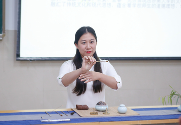讲座开始,牛瑞斌书记对左振声先生的到来表示了热烈的欢迎,指出挖掘中华文化瑰宝是青年学生的使命,推动中华优秀传统文化创造性转化、创新性发展是我们的责任。随后,左振声先生以生动的比喻点醒同学们传统文化是中国社会发展的根,知识是学生立足社会的“本”,更是以“我若芬芳,蝴蝶自来”与学生们共勉。恬静优雅的茶艺师们的沏茶表演将讲座气氛推向高潮。自然流畅的动作深深地吸引着在座的老师和学生,将国学文化中谦恭的美德表现得淋漓尽致。在沁人心脾的茶香里,左振声先生以“自强不息,厚德载物”表达了对学生们的殷切期望,国学文化讲座就此拉下了帷幕。